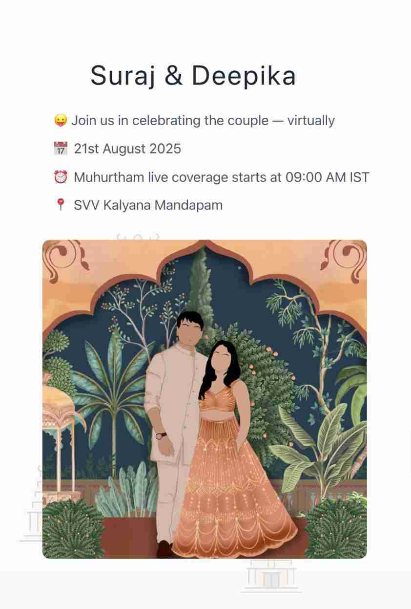 Wedding - 9 AM IST Onwards, SVV Kalyana Mandapam, Poonamallee.